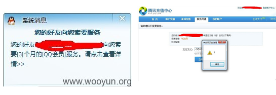 场景8: QQ右下角弹窗篇之索要服务 QQ某些自带的服务,也是会发送一个右下角弹窗的,比如找好友索要QQ会员服务。有没有想过,有一天你点开了好友的索要请求,就自动帮对方支付了3个月的QQ会员?当然,你的cookies也会被对方窃取过去。这样的事情确实出现过!自从笔者看到这个漏洞后,慎点,慎点! 场景9:QQ右下角弹窗篇之其它服务 由于类似于以上的弹窗业务场景,还有比较多,这里我就不一一列举了,例如:QQ邮箱收到新邮件,你的日志有新的评论。这些都会有如上类似的风险。 漏洞链接:搜索结果 | WooYun.org 漏洞链接:搜索结果 | WooYun.org 场景10:QQ其它功能篇之手机生活 嗯,没事别点别人QQ资料,特别对方是一个脚本小子的时候!