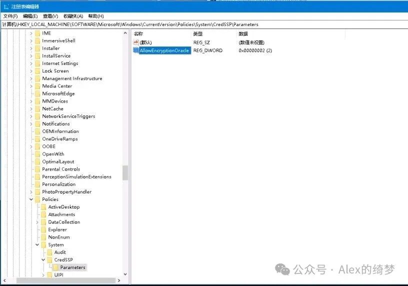 Windows家庭版无组策略功能,可通过修改注册表实现相同效果,步骤如下:按下「Win+R」输入 regedit回车,打开注册表编辑器(操作前建议备份注册表,避免误改);导航至目标路径: HKEY_LOCAL_MACHINE\Software\Microsoft\Windows\CurrentVersion\Policies\System若路径中无CredSSP项,右键System→新建→项,命名为CredSSP右键"CredSSP"→"新建"→"项",命名为"Parameters"右键"Parameters"→"新建"→"DWORD(32)位值",命名为"AllowEncryptionOracle"双击该值,基数选择「十进制」,数值数据填写「2」(2代表“易受攻击”模式,临时兼容旧策略);关闭注册表编辑器,无需重启电脑,直接尝试远程连接即可。「快捷操作」:管理员身份运行PowerShell或CMD命令提示符,复制以下命令回车,一键完成注册表配置:REG ADD "HKLM\Software\Microsoft\Windows\CurrentVersion\Policies\System\CredSSP\Parameters" /v AllowEncryptionOracle /t REG_DWORD /d 2 /f