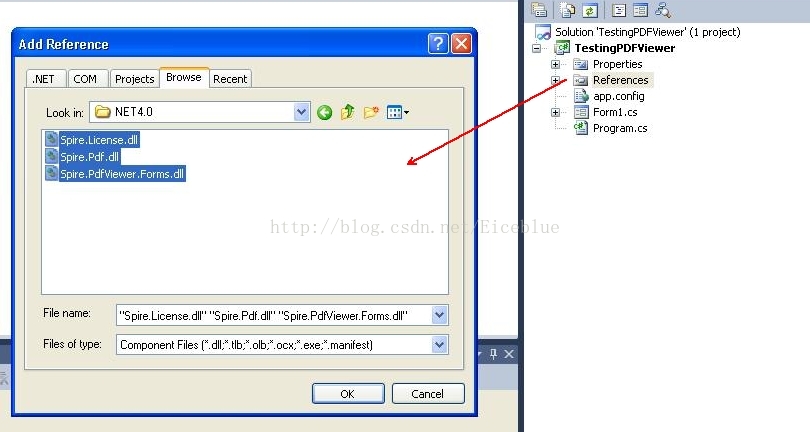 1、安装这个组件后,在安装的路径上会生成一个叫Bin的文件夹,这个文件夹里包含的就是这个组件,它分别有NET 2.0, .NET 3.5, .NET 4.0对应的.dll文件, 由于我创建的项目的TargetFramework 是.NET 4.0的,所以我就引用了.NET4.0文件夹里包含的所有的.dll文件。