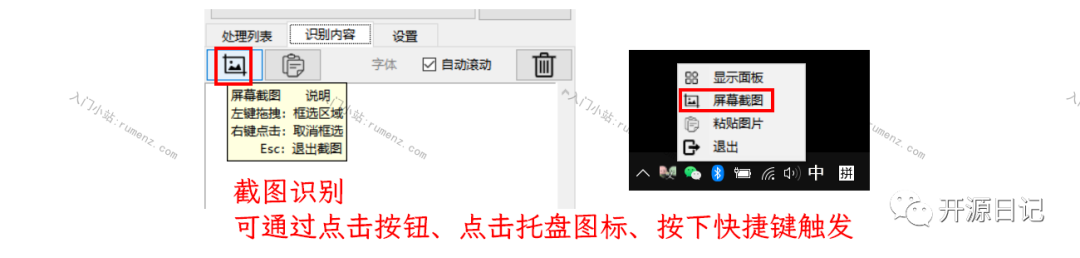 点击截图按钮或自定义快捷键,唤起截图识别。