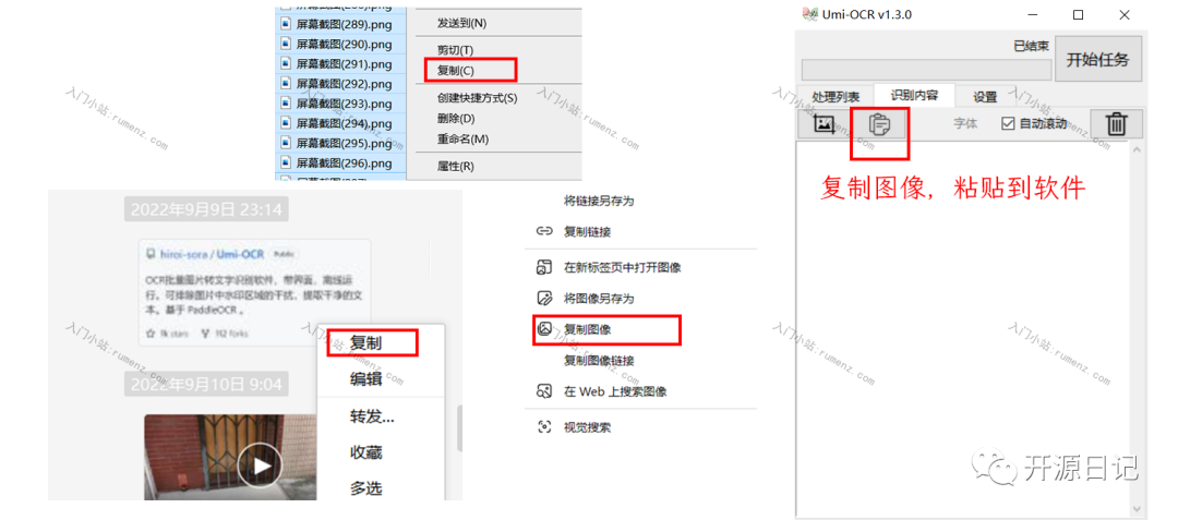 在任何地方(如文件管理器,网页,微信)复制图片,软件上点击粘贴按钮,自动识别。