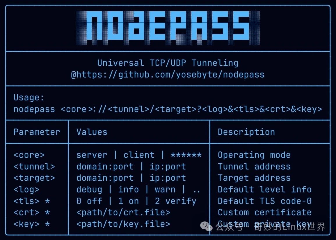 前几天,我在调试一个项目时遇到个棘手问题:公司内网的测试服务器死活连不上,防火墙像个固执的门卫,愣是不让我进。VPN?太麻烦了!折腾半天后,我发现了一个开源神器——NodePass(https://github.com/yosebyte/nodepass)。这玩意儿简直是网络连接的“魔法传送门”,能轻松穿透防火墙、NAT,让数据在复杂网络里畅通无阻。 今天就来跟大家聊聊这个 GitHub 上的宝贝,看看它怎么帮开发者、运维,甚至是科技爱好者解决网络难题! NodePass 是个啥?NodePass 是一个开源的网络隧道工具,基于 Go 语言开发,目标是让两台机器之间的通信变得简单又安全。想象一下,你有一台内网的 Web 服务器,想让远在千里之外的同事访问,NodePass 就能搭一座隐形的桥,把数据安全送过去。 它的工作方式挺巧妙:用一个未加密的 TCP 通道来传递信号(就像在喊“喂,准备好接收数据啦!”),然后通过另一个支持加密的数据通道把实际内容传过去。你可以把它跑在服务器模式,接受外来的连接,也可以跑客户端模式,去连别人的服务器。整个过程配置简单,资源占用低,还支持 Docker 部署,简直是现代开发者的福音! 作为 GitHub 上的开源项目,NodePass 用 MIT 许可证,代码全公开,社区也挺活跃。无论你是想搞定远程调试,还是给物联网设备搭个通信管道,它都能派上用场。