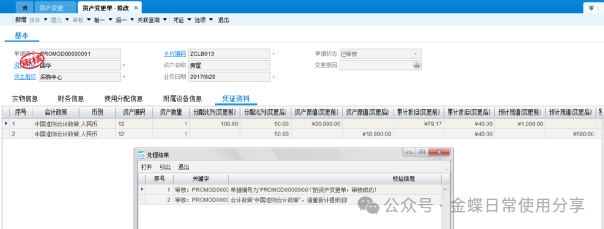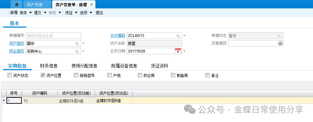 【功能菜单】:资产管理】->【固定资产】->【日常管理】->【资产变更单】