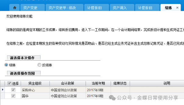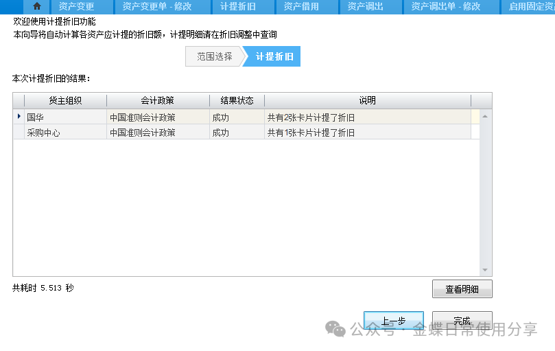 注:按变动进行折旧是不可逆操作,请根据自身情况加以选择。