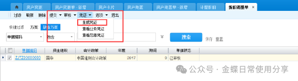 选择需要生成凭证的单据,点击“生成凭证”,生成计提折旧凭证,还可以通过列表中查询单据的业务凭证及总账凭证。