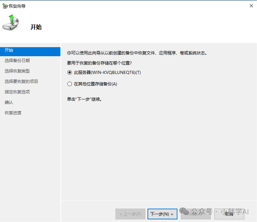 - 本篇文章主要介绍使用windows server backup图形化工具恢复