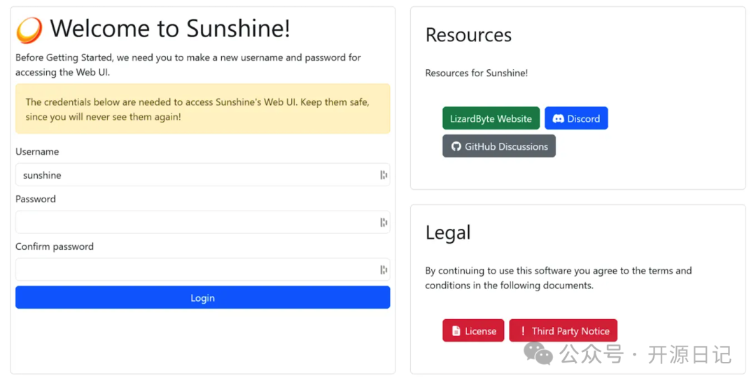 - 启动 Sunshine 后,通过浏览器访问默认地址