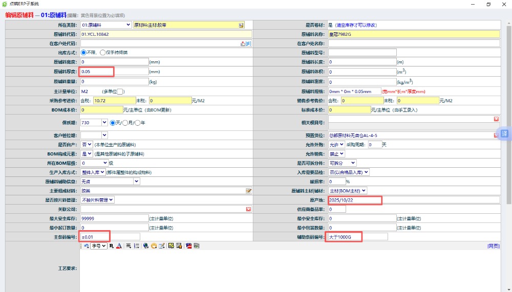 [点晴永久免费OA]每个材料的厚度和公差、剥离力标准、环保有效期我在物料信息这里输入后,能直接在来料检测报告上体现出来吗