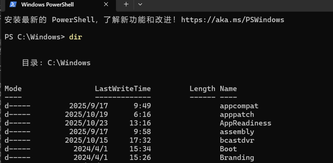 值得注意的是,PowerShell为许多常用命令设置了别名,使CMD用户可以平滑过渡。例如,在PowerShell中你仍然可以使用dircopy等熟悉的命令,但它们实际调用的是更强大的PowerShell命令。