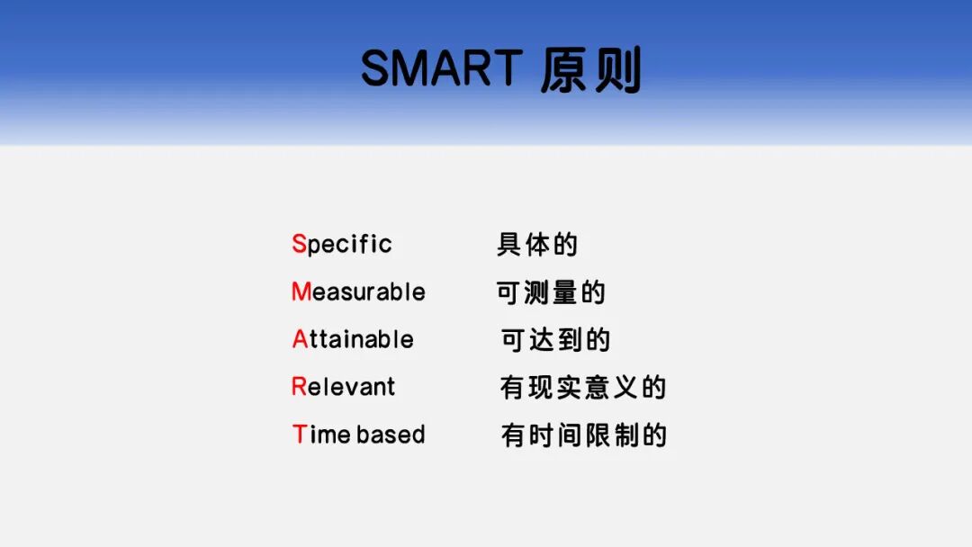 企业年度经营计划、部门绩效考核、项目阶段目标设定,甚至个人的学习计划或健身计划,都可以用 SMART 来检验目标是否合理、可落地。