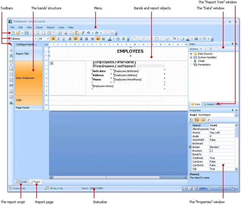 通过FastReport设计器可以直观地设计报表布局: