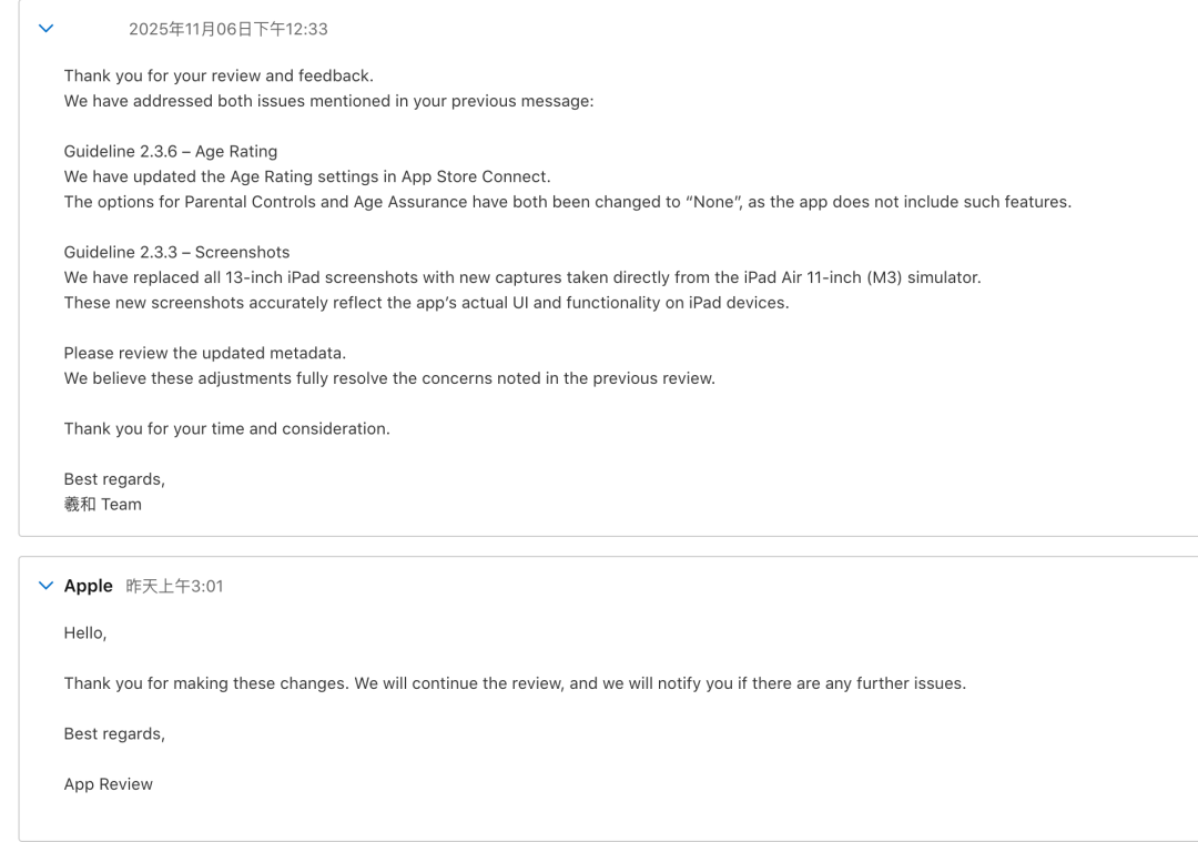 一天时间不到,新的审核结果下来了,审核通过,应用可以分发了。